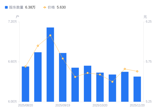 11月25日消息,数据显示,截至2025年11月10日,红旗连锁A股股东总户数为6.45万户,较上期(2025年10月31日)增加411户,增幅0.64%。公司最新A股总股本为13.6亿股,其中流通A股11.45亿股,户均持有流通A股数量为1.78万股,较上期减少113.85股,降幅0.64%;户均持流通A股市值10.05万元,较上期增加2214.14元,增幅2.25%。