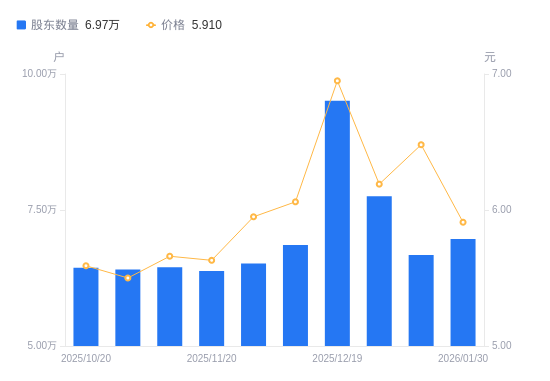 近一年(2025年1月10日至2026年1月9日),红旗连锁A股股东户数从5.74万户,增加至7.75万户,增幅35.05%,区间股价上涨18.24%。