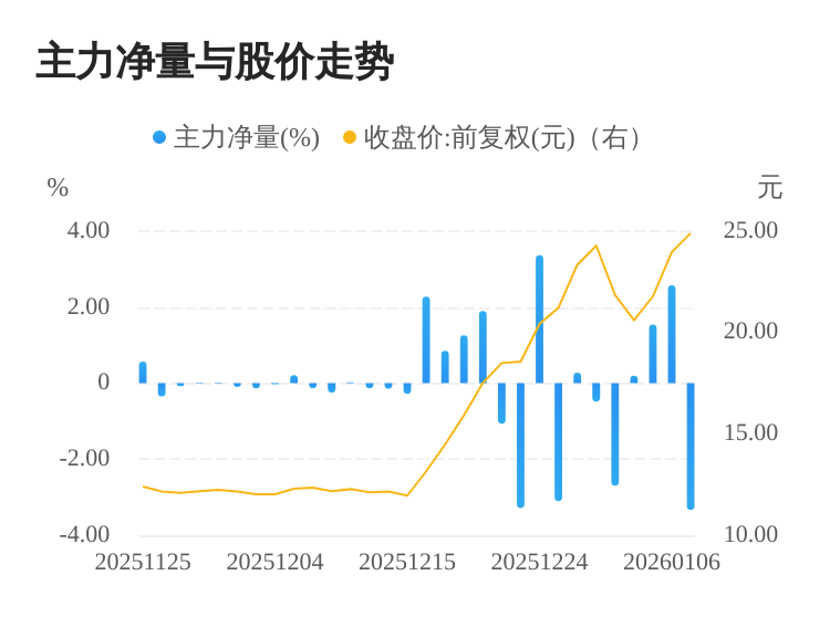 该股今日主力净量为负,且值较大,表明主力大幅流出,主动卖出明显多于主动买入。与此同时,今日换手率较高,主力抛售的嫌疑较大。投顾建议:投资者短期宜合理控制仓位,谨慎为佳。