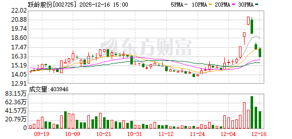 12月16日,跃岭股份(002725)发布公告,公司股票在2025年12月12日、15日及16日连续3个交易日,收盘价格跌幅偏离值累计超过20%。