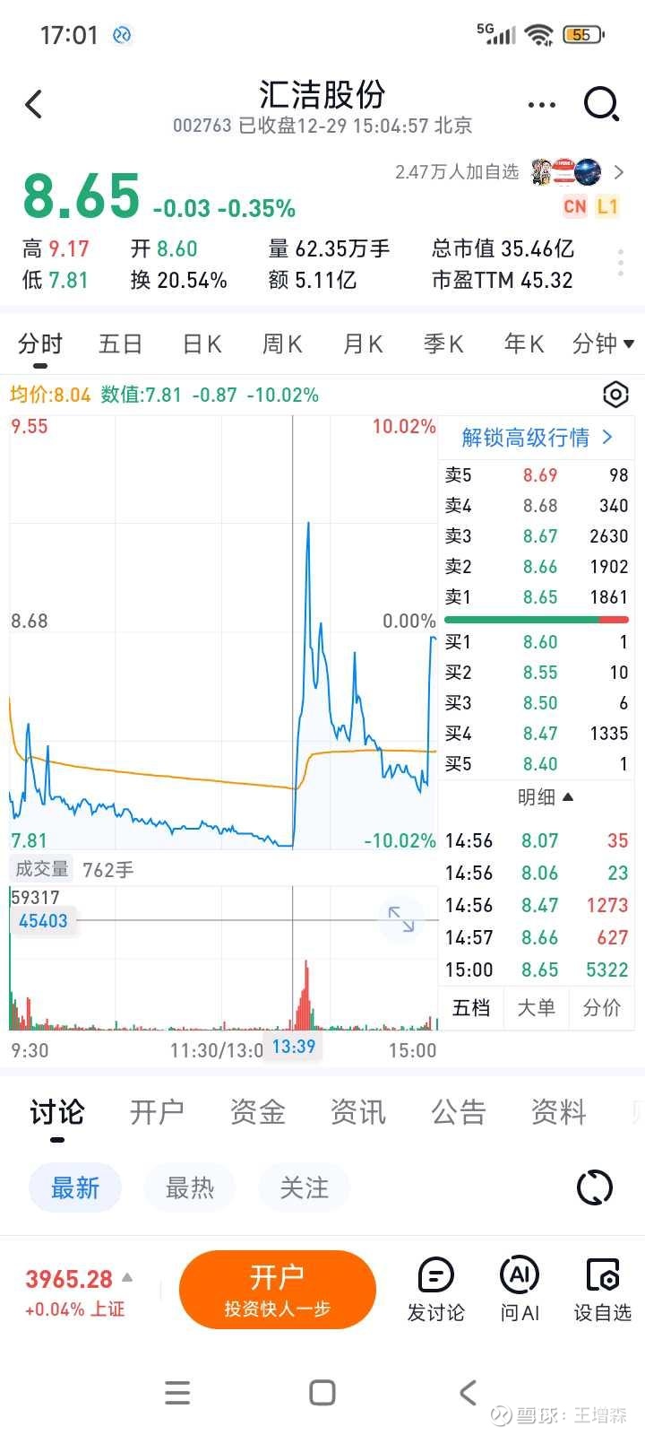 :有老板告诉我,汇洁股份一字板了,咋操作。等待开板爆量再动。涨停板最好操作。
