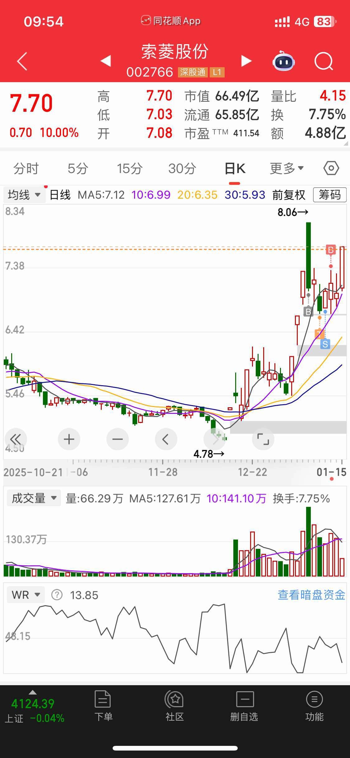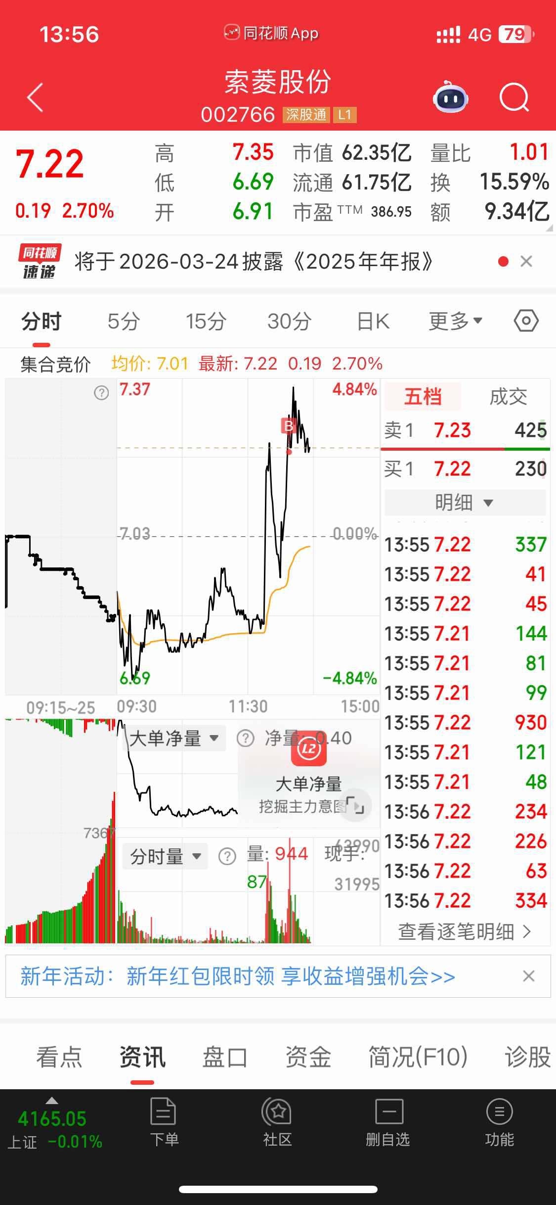 我刚写完,索菱股份就炸了,这盘感真是舒服的很