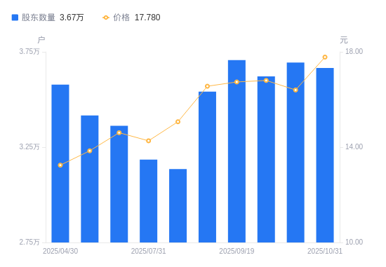 近一年(2024年11月20日至2025年11月20日),凯中精密A股股东户数从3.74万户,减低至3.35万户,降幅10.34%,区间股价上涨7.37%。