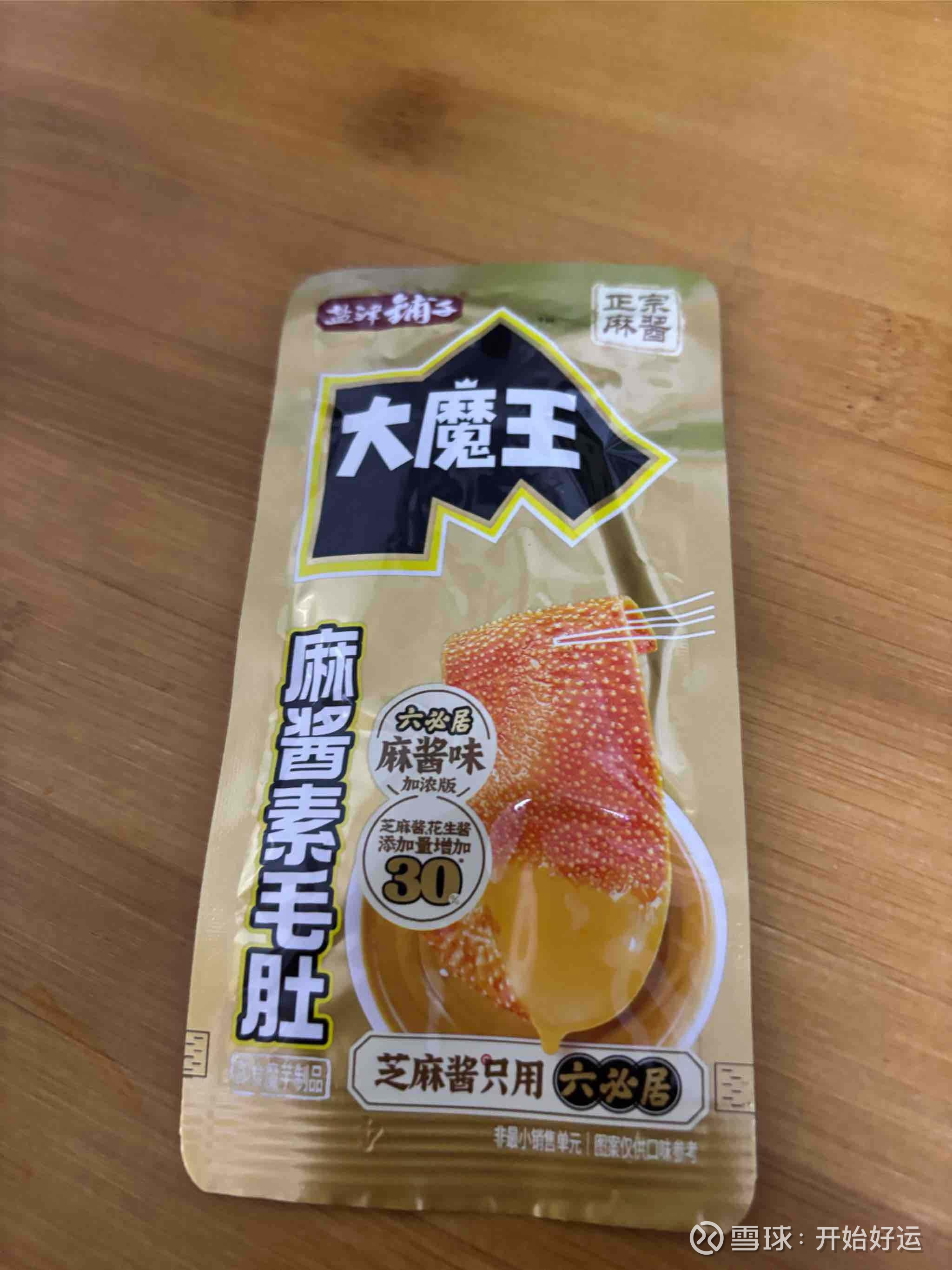 再试大魔王,这个是盐津铺子和六必居联名的,麻酱味道的。