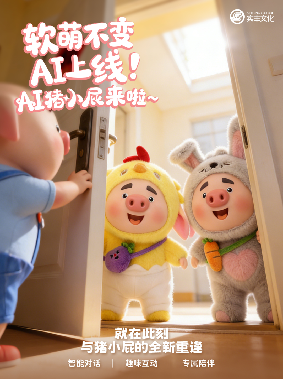 2 月 1 日,国民级 IP 猪小屁喜提新升级!实丰文化(002862)发展股份有限公司(以下简称“实丰文化”、“公司”,股票代码:002862)携手震惊文化,正式推出猪小屁首款 AI 毛绒玩具,将这个坐拥 2000 万 + 粉丝的 “憨憨小可爱” 从屏幕搬进现实,为 3-12 岁小朋友和家长们带来全新的智能陪伴体验。