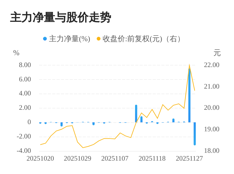 该股今日主力净量为负,且值较大,表明主力大幅流出,主动卖出明显多于主动买入。与此同时,今日换手率较高,主力抛售的嫌疑较大。投顾建议:投资者短期宜合理控制仓位,谨慎为佳。