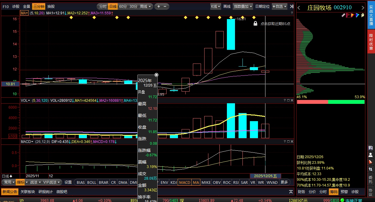 庄园牧场真是三板组大哥标准操盘手法,三板组在微盘股领域做到了极致,选的标的都很好,真正做到了买在无人问津低位时候,卖在人声鼎沸的鼎沸时,说白了就是赚取缺乏耐心、低认知、追涨杀跌、盲目从众的散户的钱,话说回来这些今天追进去的散户不亏钱天理难容,有时候也在想...