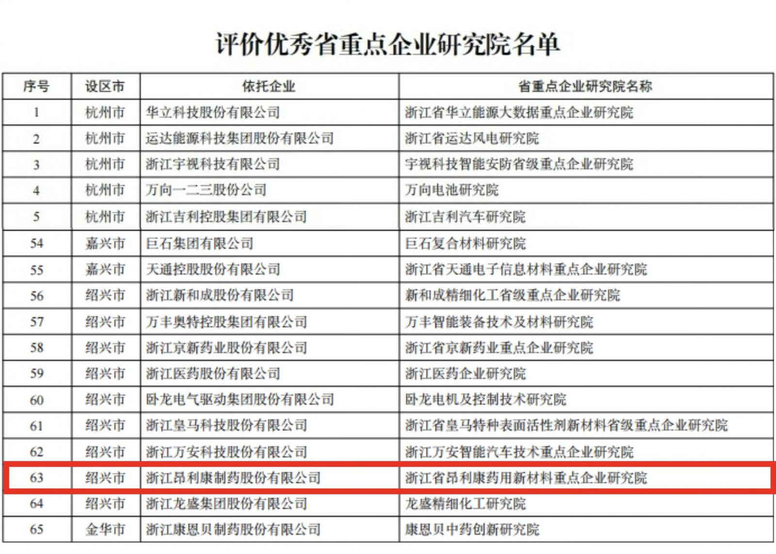 近日,浙江省经济和信息化厅依据《浙江省重点企业研究院、企业研究院建设与管理办法》(浙经信高新〔2025〕169号),公布了2025年度省重点企业研究院集中绩效评价结果,浙江昂利康(002940)制药股份有限公司省重点企业研究院获评优秀,彰显了公司在医药领域持续领先的科技创新实力与行业示范作用。