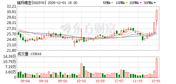 瑞玛精密(002976)发布公告,公司股票在2025年11月27日、28日及12月1日连续3个交易日,收盘价格涨幅偏离值累计超过20%。