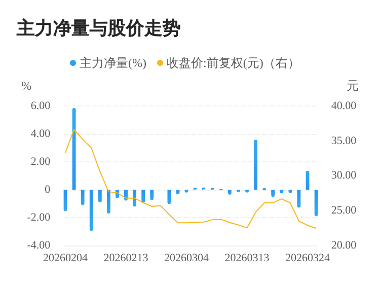 该股今日主力净量为负,且值较大,表明主力大幅流出,主动卖出明显多于主动买入。与此同时,今日换手率较高,主力抛售的嫌疑较大。投顾建议:投资者短期宜合理控制仓位,谨慎为佳。