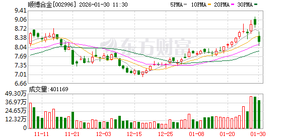 截至1月30日9点38分,顺博合金的股价8.36元/股,总市值56亿元,市盈率38.5。
