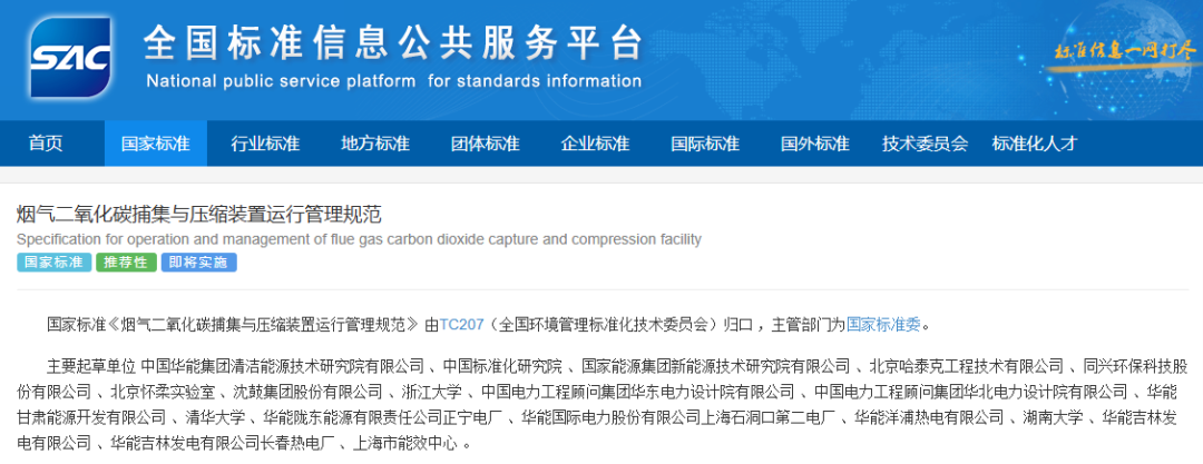近日,同兴科技(003027)作为核心参编单位编制的《烟气二氧化碳捕集与压缩装置运行管理规范》国家标准正式发布。