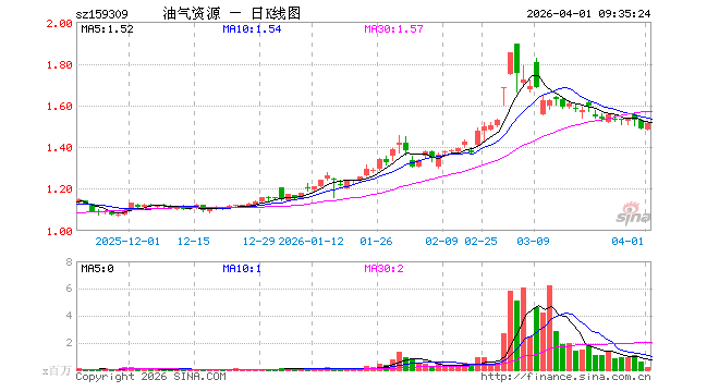4月1日,油气ETF汇添富(159309)开盘跌0.40%,报1.483元。油气ETF汇添富(159309)重仓股方面,中国石油开盘跌1.48%,中国海油跌2.27%,中国石化涨0.00%,杰瑞股份涨4.34%,招商轮船涨1.96%,广汇能源跌1.65%,中远海能涨1.73%,洲际油气跌0.88%,海油工程跌0.15%,招商南油涨0.47%。