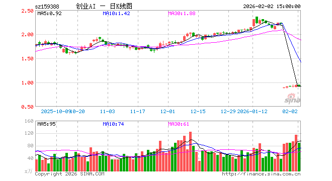 2月2日,创业板人工智能ETF国泰(159388)跌3.81%,成交额8419.60万元。当日份额减少1400.00万份,最新份额为7.81亿份,近20个交易日份额增加5.03亿份。最新资产净值计算值为7.09亿元。