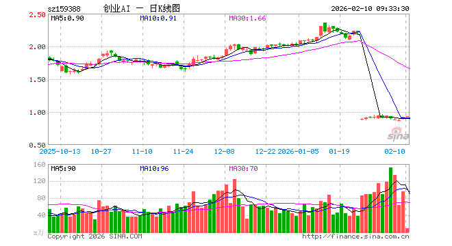 2月10日,创业板人工智能ETF国泰(159388)开盘涨0.43%,报0.926元。创业板人工智能ETF国泰(159388)重仓股方面,中际旭创开盘跌0.78%,新易盛涨0.52%,天孚通信跌2.17%,蓝色光标涨0.55%,协创数据跌1.10%,同花顺涨0.00%,润和软件跌0.30%,北京君正跌0.34%,昆仑万维跌0.98%。