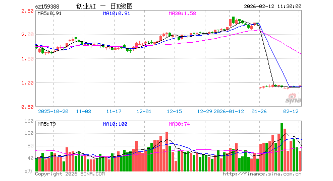 2月12日,截止午间收盘,创业板人工智能ETF国泰(159388)涨2.54%,报0.929元,成交额5874.45万元。创业板人工智能ETF国泰(159388)重仓股方面,中际旭创截止午盘跌0.17%,新易盛跌0.31%,天孚通信涨11.61%,蓝色光标涨2.75%,协创数据涨7.16%,同花顺跌0.70%,润和软件涨0.12%,北京君正涨2.63%,昆仑万维涨1.43%。