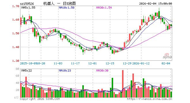 2月4日,机器人ETF嘉实(159526)跌0.70%,成交额2498.69万元。当日份额增加150.00万份,最新份额为7.69亿份,近20个交易日份额增加7050.00万份。最新资产净值计算值为11.94亿元。
