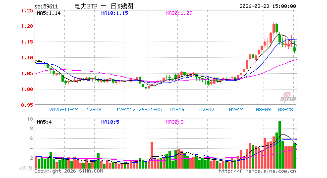 3月23日,电力ETF广发(159611)跌2.10%,成交额5.79亿元。当日份额增加1680.00万份,最新份额为54.42亿份,近20个交易日份额增加15.63亿份。最新资产净值计算值为60.97亿元。