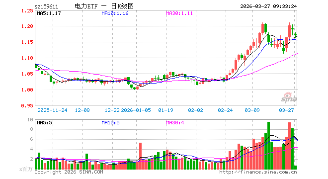 3月27日,电力ETF广发(159611)开盘跌1.43%,报1.172元。电力ETF广发(159611)重仓股方面,长江电力开盘跌0.11%,中国核电跌0.65%,三峡能源跌1.33%,国电电力跌0.98%,永泰能源跌1.03%,华能国际跌1.46%,国投电力跌0.47%,中国广核跌0.87%,上海电力跌0.94%,川投能源跌0.45%。