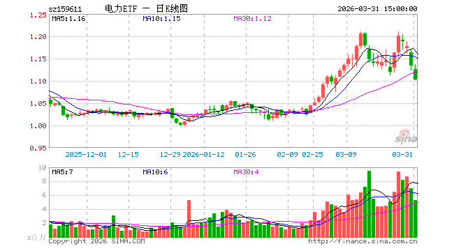3月31日,电力ETF广发(159611)跌2.65%,成交额5.91亿元。当日份额减少1.20亿份,最新份额为60.58亿份,近20个交易日份额增加17.88亿份。最新资产净值计算值为66.88亿元。