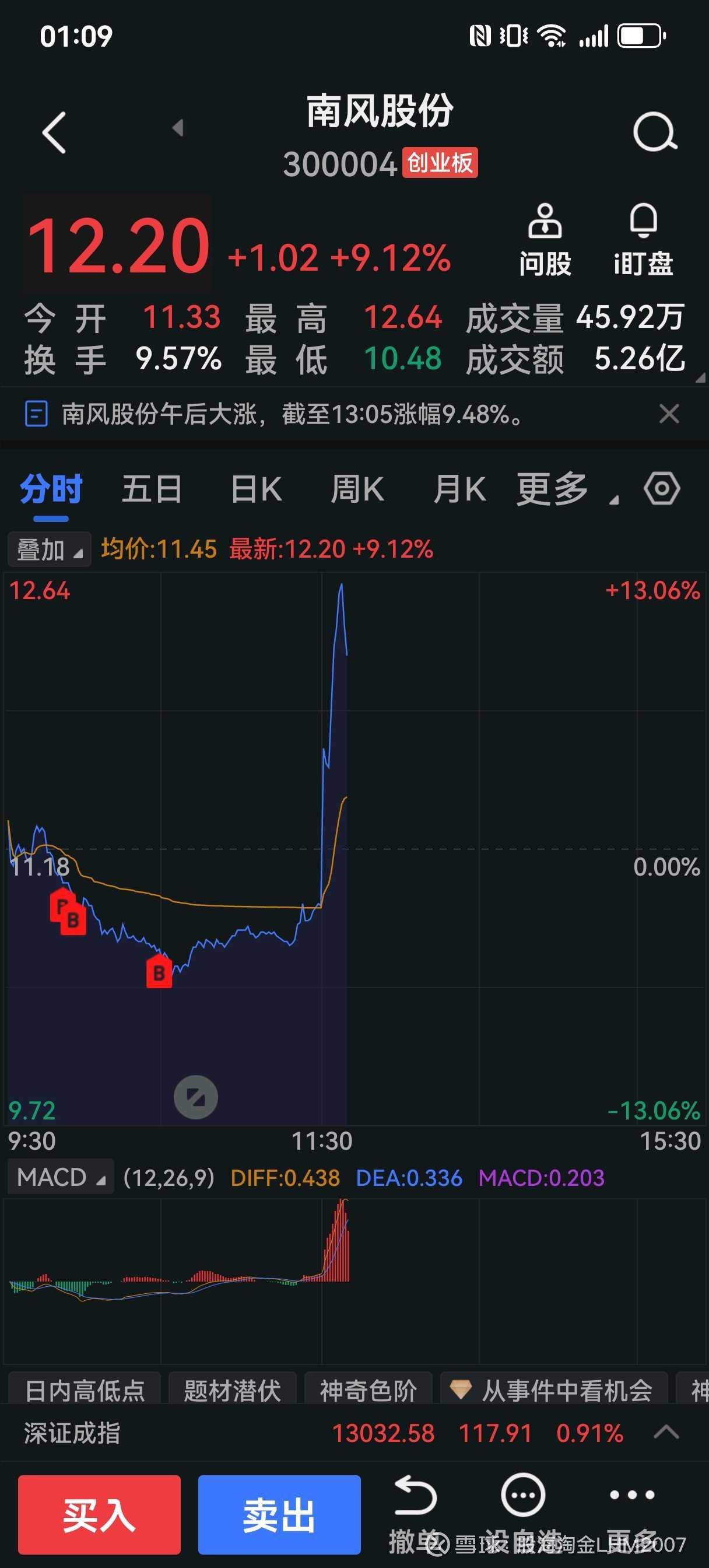 : 高哥,方便时,辛苦帮看看南风股份(300004),今天放量了,横了2个多月了