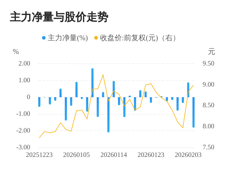该股今日主力净量为负,且值较大,表明主力大幅流出,主动卖出明显多于主动买入。与此同时,今日换手率较高,主力抛售的嫌疑较大。投顾建议:投资者短期宜合理控制仓位,谨慎为佳。