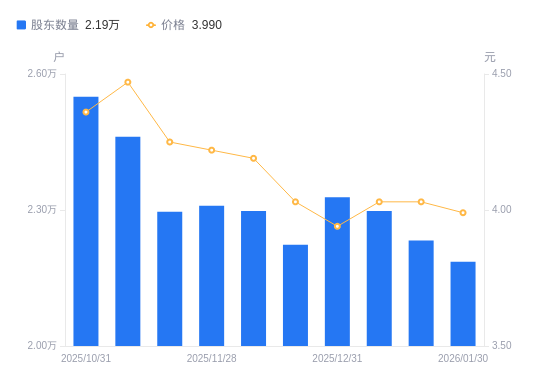 近一年(2025年2月10日至2026年1月30日),新宁物流A股股东户数从1.57万户,增加至2.19万户,增幅39.20%,区间股价上涨17.70%。