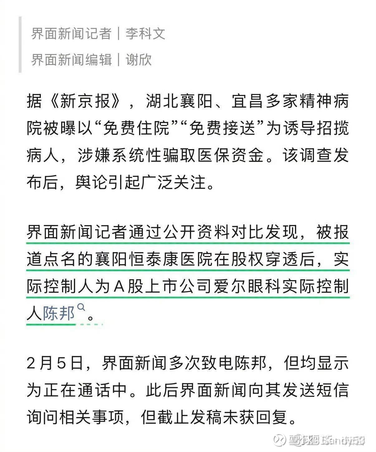 (300015.SZ)董事长陈邦关联的精神病院中,涉及“骗保”的或不止襄阳恒泰康医院一家。