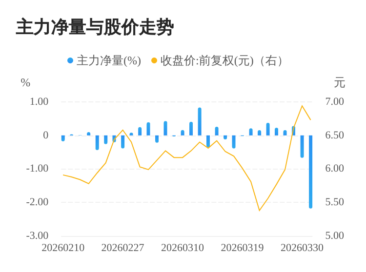 万顺新材(300057)03月31日主力(dde大单净额)净流出1.08亿元,涨跌幅为-3.03%,主力净量(dde大单净额/流通股)为-2.18%,两市排名5177/5193。