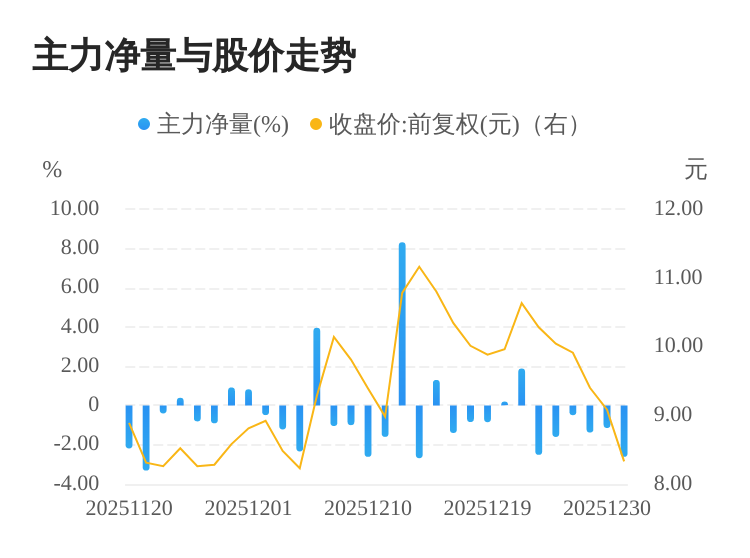 该股今日主力净量为负,且值较大,表明主力大幅流出,主动卖出明显多于主动买入。与此同时,今日换手率较高,主力抛售的嫌疑较大。投顾建议:投资者短期宜合理控制仓位,谨慎为佳。