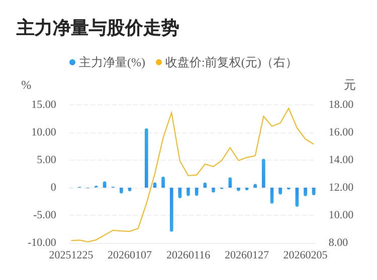 该股今日主力净量为负,且值较大,表明主力大幅流出,主动卖出明显多于主动买入。与此同时,今日换手率较高,主力抛售的嫌疑较大。投顾建议:投资者短期宜合理控制仓位,谨慎为佳。