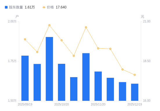 近一年(2024年12月20日至2025年12月19日),金利华电A股股东户数从7925户,增加至1.61万户,增幅102.91%,区间股价上涨16.21%。