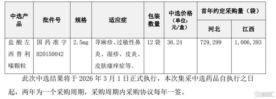 格隆汇1月26日丨康芝药业(300086.SZ)公布,近期参加河北省牵头京津冀赣化学药品集中带量采购(文件编号HBYPJC-2025-05)申报工作,公司产品盐酸左西替利嗪颗粒中选本次集中带量采购。