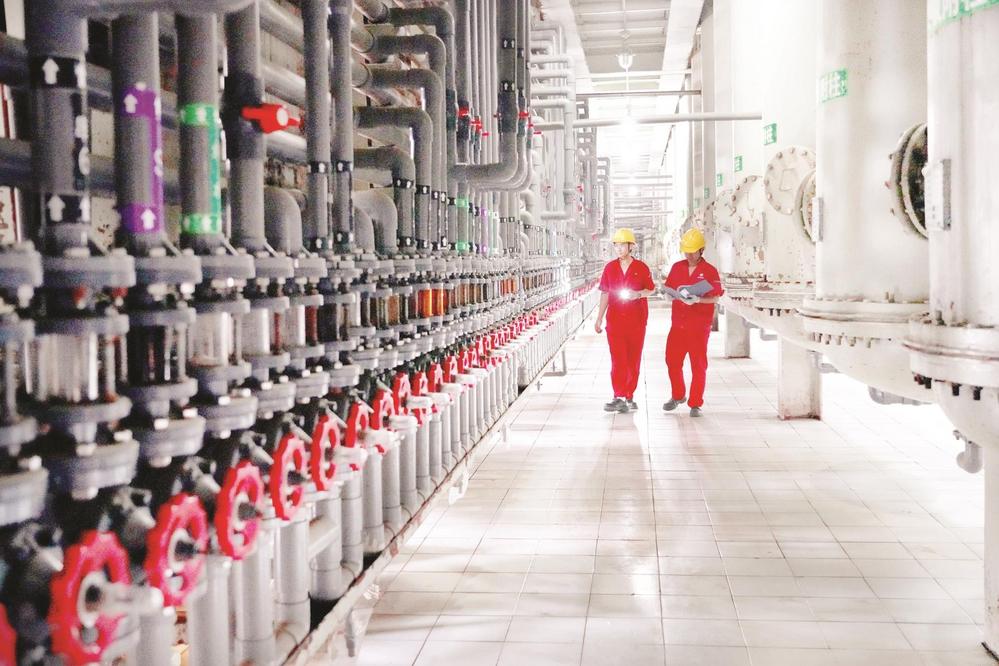 晨光生物甜菊糖精制车间员工在巡岗。 李卫国 摄▲
