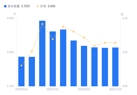 近一年(2024年11月20日至2025年11月20日),秀强股份A股股东户数从3.65万户,增加至3.7万户,增幅1.51%,区间股价上涨0.34%。