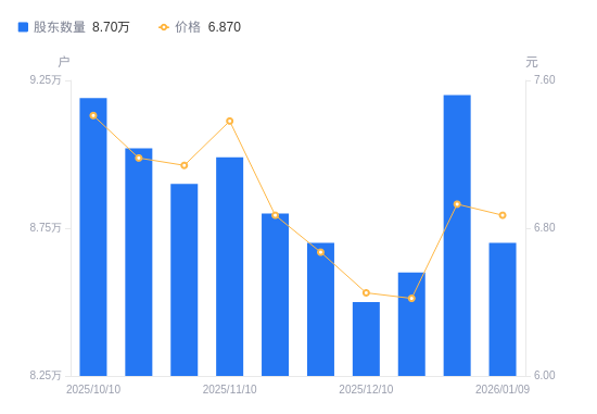 近一年(2025年1月20日至2026年1月20日),华峰超纤A股股东户数从8.63万户,减低至8.5万户,降幅1.53%,区间股价上涨11.11%。