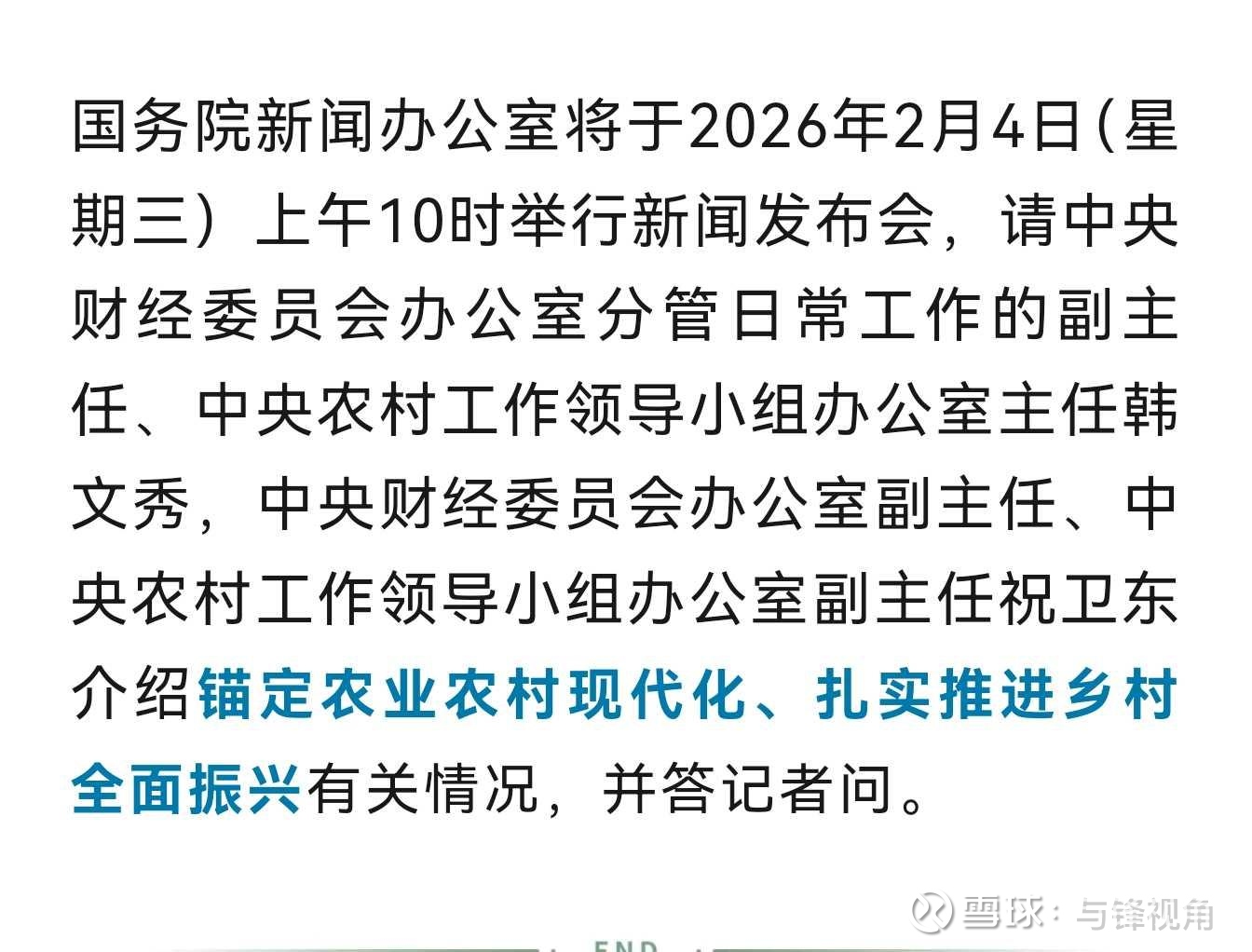 关注一下,明天有农业新闻发布会,有可能发布中央1号文件
