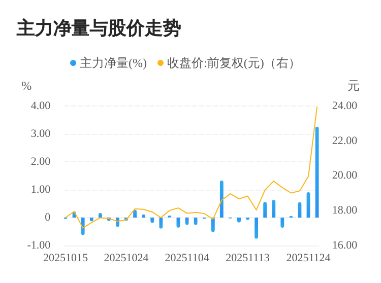 科德教育(300192)11月25日主力(dde大单净额)净流入2.49亿元,涨跌幅为19.99%,主力净量(dde大单净额/流通股)为3.26%,两市排名11/5169。
