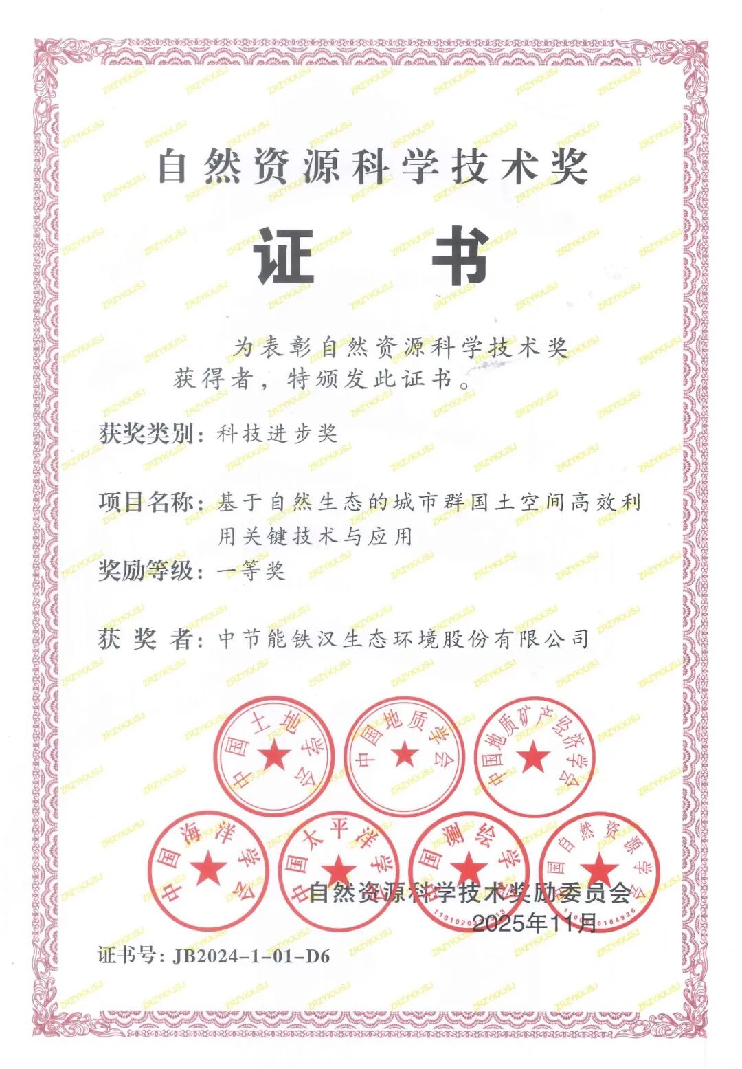 日前,2024年度自然资源科学技术奖获奖名单公布,中节能铁汉(300197)参与的“基于自然生态的城市群国土空间高效利用关键技术与应用”项目成功入选,荣获科技进步奖一等奖。