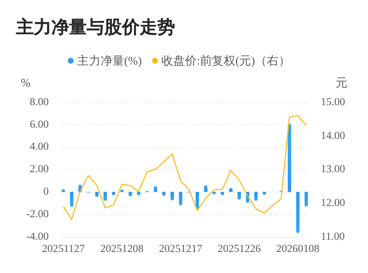 该股今日主力净量为负,且值较大,表明主力大幅流出,主动卖出明显多于主动买入。与此同时,今日换手率较高,主力抛售的嫌疑较大。投顾建议:投资者短期宜合理控制仓位,谨慎为佳。