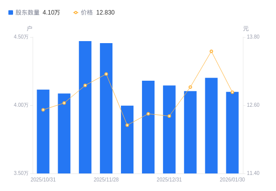 近一年(2025年2月20日至2026年1月30日),新开普A股股东户数从3.49万户,增加至4.1万户,增幅17.44%,区间股价上涨9.19%。