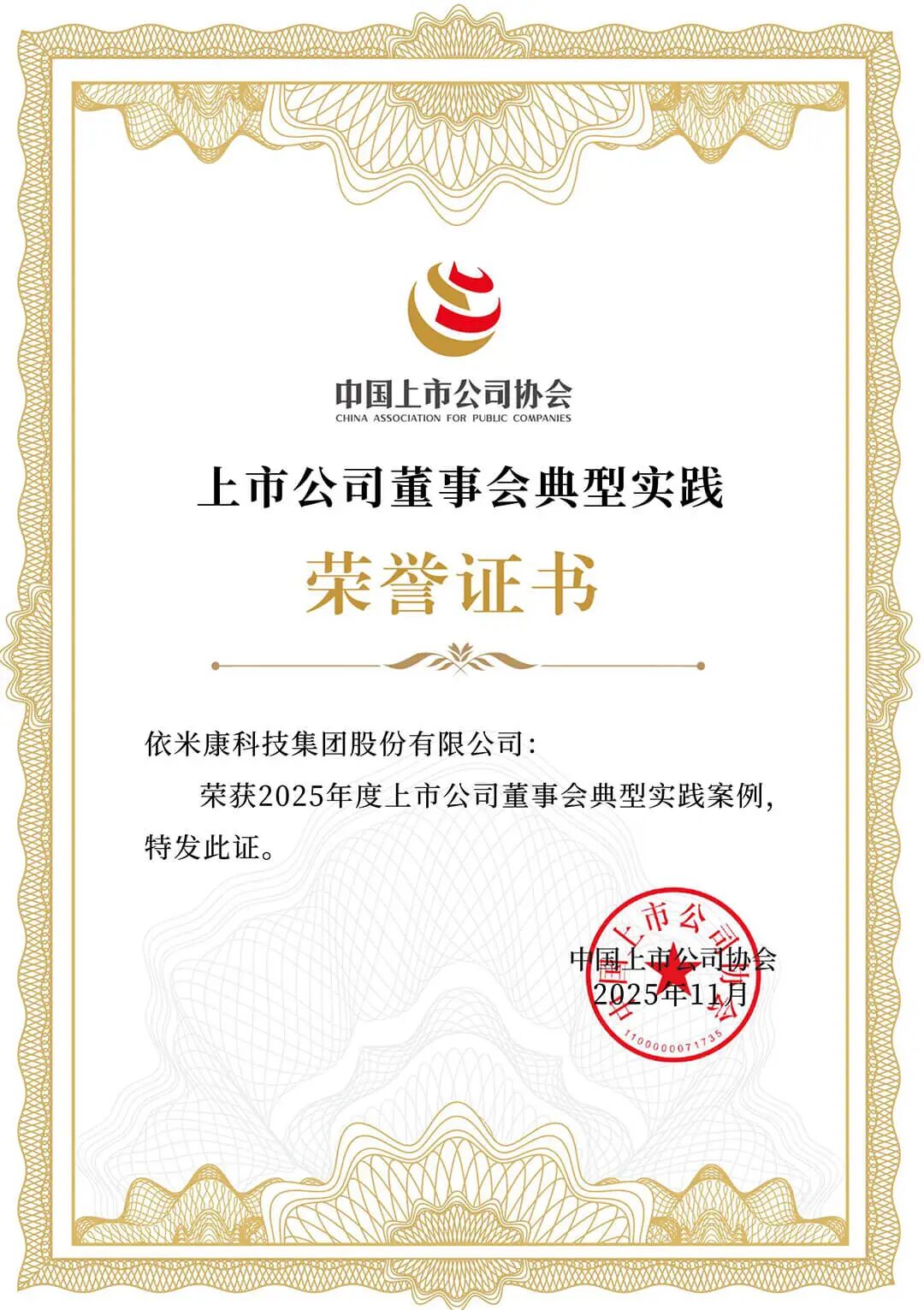 荣誉加持的背后,是依米康多年来在公司治理领域的持续精进。值得关注的是,这已是公司连续两年入选“上市公司董事会典型实践案例”,连续四年获评“上市公司董事会办公室优秀实践”。连续获得行业权威肯定,不仅印证了监管机构对公司治理体系成熟度与稳定性的高度认可,也彰显出依米康已构建起自我完善、动态优化的长效治理机制。
