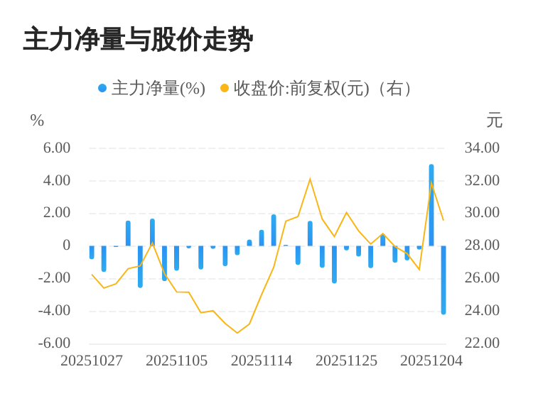 该股今日主力净量为负,且值较大,表明主力大幅流出,主动卖出明显多于主动买入。与此同时,今日换手率较高,主力抛售的嫌疑较大。投顾建议:投资者短期宜合理控制仓位,谨慎为佳。