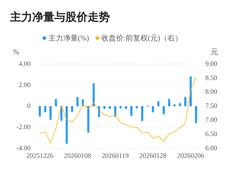 该股今日主力净量为负,且值较大,表明主力大幅流出,主动卖出明显多于主动买入。与此同时,今日换手率较高,主力抛售的嫌疑较大。投顾建议:投资者短期宜合理控制仓位,谨慎为佳。