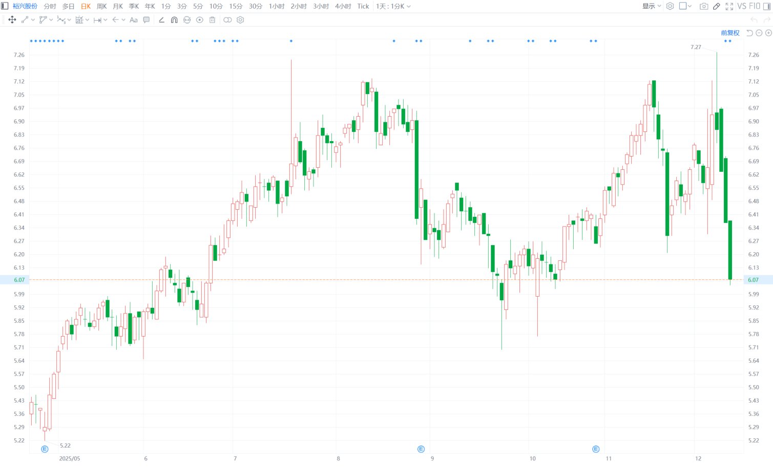 格隆汇12月11日|裕兴股份(300305.SZ)今日盘中一度跌5.18%至6.04元,股价创10月20日以来近2个月新低;该股本周暂已四日连跌累跌约13%。裕兴股份公告称,持股5%以上股东北京人济房地产开发集团有限公司计划以集中竞价方式减持公司股份不超过375万股,占公司总股本的1%,减持原因为资金需求,减持期间为2026年1月5日至2026年4月3日。(格隆汇)
