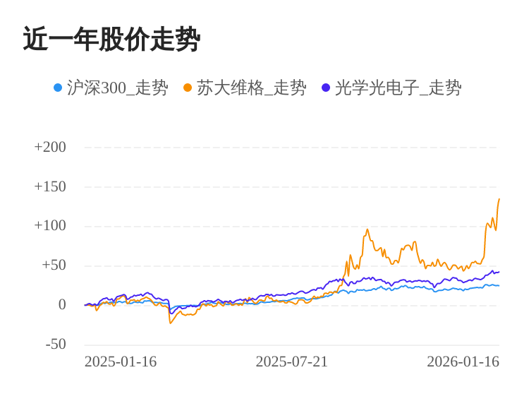 01月16日,苏大维格(300331)股价大涨。截至今日收盘,苏大维格上涨5.09%,收盘价为48.35元,收盘价创历史新高。