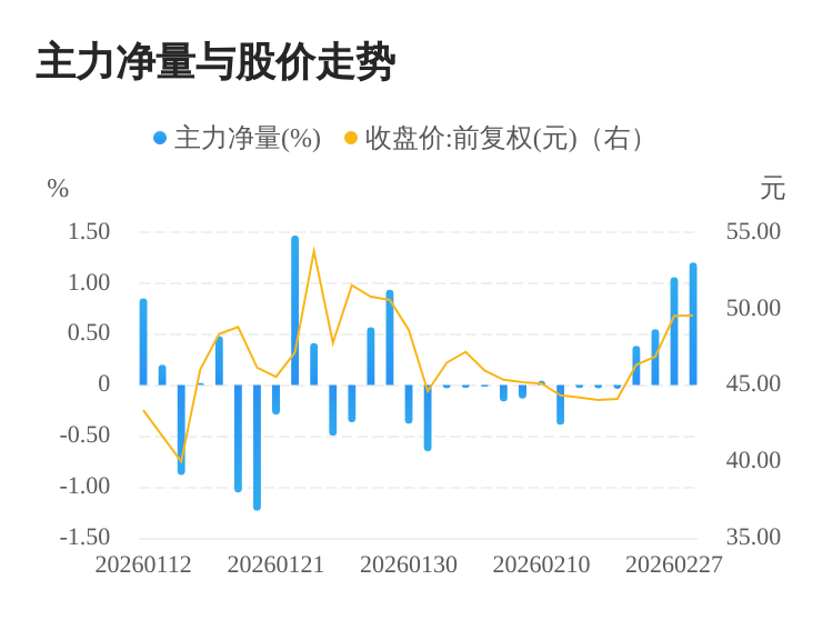 苏大维格(300331)03月02日主力(dde大单净额)净流入1.25亿元,涨跌幅为0.02%,主力净量(dde大单净额/流通股)为1.20%,两市排名60/5190。