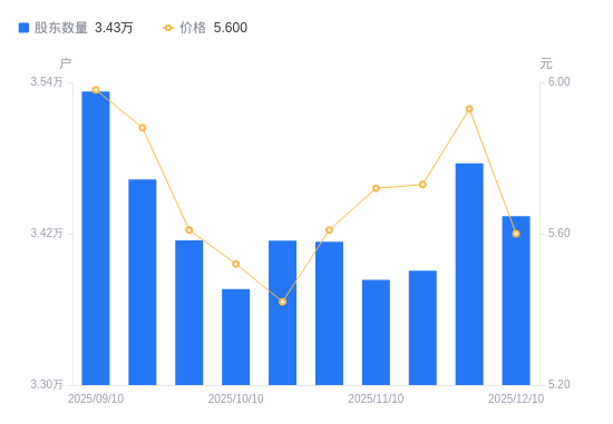 近一年(2024年12月20日至2025年12月10日),全通教育A股股东户数从3.98万户,减低至3.43万户,降幅13.68%,区间股价下跌11.95%。