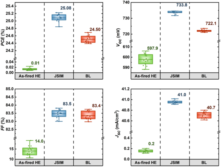 JSIM技术采用了全新的低线电阻电极浆料体系,搭配高能量注入烧结过程,能形成良好的欧姆接触,降低金属接触复合,浆料体系的改变解决了常规TOPCon电池组件面临的湿热稳定性问题,这一研究结果已在先期发表的文章中进行了报道。与此同时,JSIM技术的引入也大大提高了电池的光电转换效率,中来和新南威尔