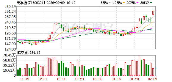 人民财讯2月9日电,天孚通信股价创历史新高,现涨超11%,报282元,总市值为近2200亿元。